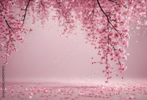 Fototapeta premium Mesmerizing pink sakura petal fall, soft focus background, art, photo