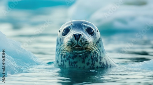 Fototapeta premium Mesmerizing portrait of a spotted seal emerging from icy arctic waters, curious gaze