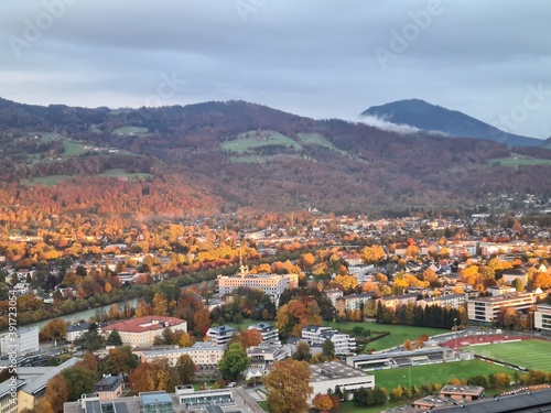 Fototapeta premium Mesmerizing shot of beautiful cityscape, fall Salzburg, Austria.