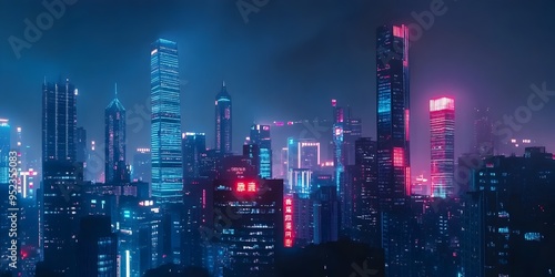 © pisan thailand, Fototapeta premium Mesmerizing Skyline Gleaming High Rises Illuminate Neon Lit Urban Landscape