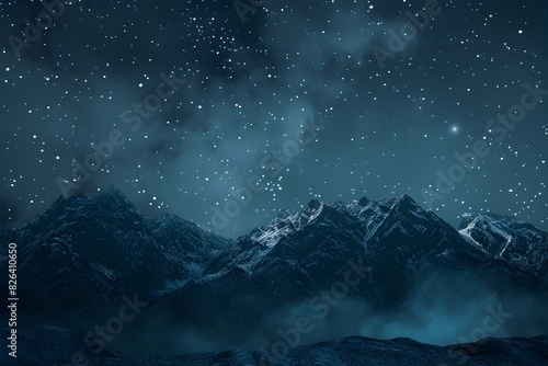 Naklejka premium Mesmerizing Starry Night Sky Overlooking Towering Snow Capped Mountain Peaks