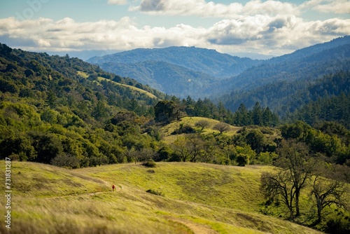 © Wirestock, Fototapeta premium Mesmerizing view of the green hills and mountains against the cloudy sky in spring