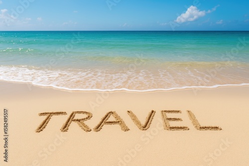 © The 2R Artificiality, Fototapeta premium Message Inscribed on the Shoreline of a Sunny Beach