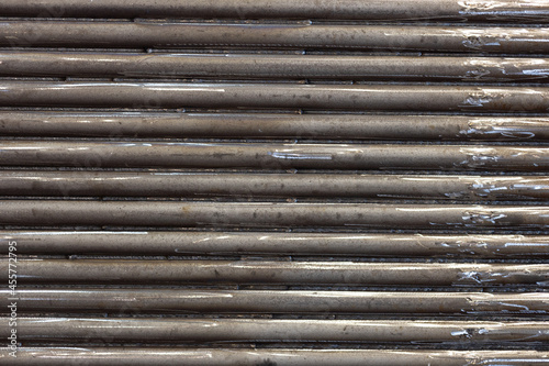 Obraz premium metal background. industrial background from horizontal pipes welded to each...