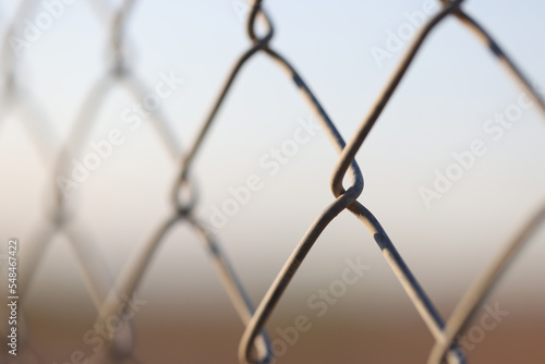 © megaflopp, Fototapeta premium Metal chain links wire-mesh rabitz on blurred background