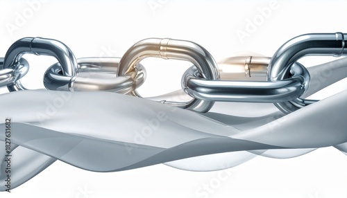 Obraz premium Metal chains interlinked with silver ribbon creating a dynamic visual effect...