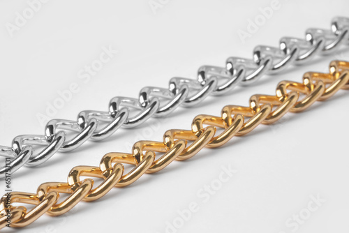 © New Africa, Obraz premium Metal chains isolated on white, closeup. Luxury jewelry