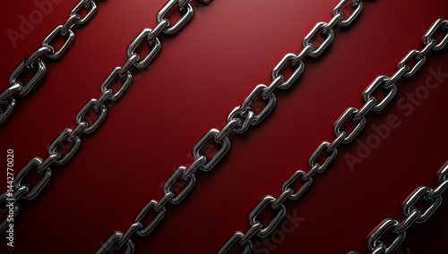 © ayn, Obraz premium Metal chains on a red background