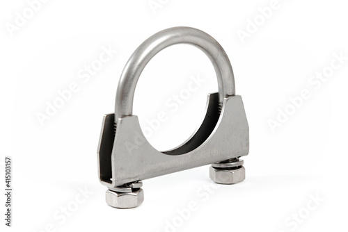 © Radek Havlicek, Obraz premium Metal clamp for pipes with screws on white background