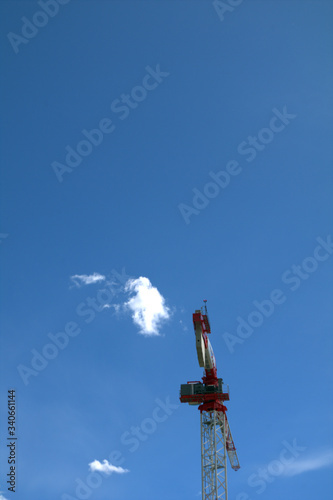 Obraz premium metal crane,building,sky,blue,cloud,white,high, steel, structure,