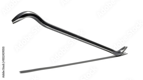 Fototapeta premium Metal Crowbar on Shadow: A sleek, metallic crowbar casting a defined shadow, showcasing its distinct shape and design. Its curved form and angled end represent the strength and leverage.