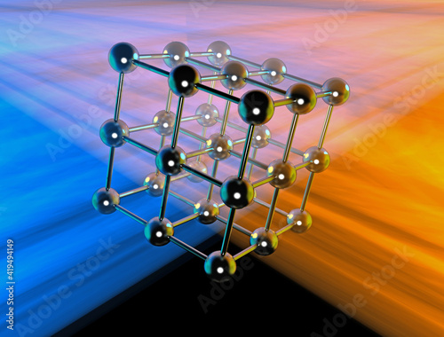 Obraz premium metal cube molecular structure in orange and blue light rays