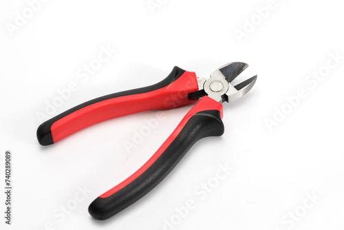 © ROM, Fototapeta premium Metal cutting pliers with sharp tip on white background.
