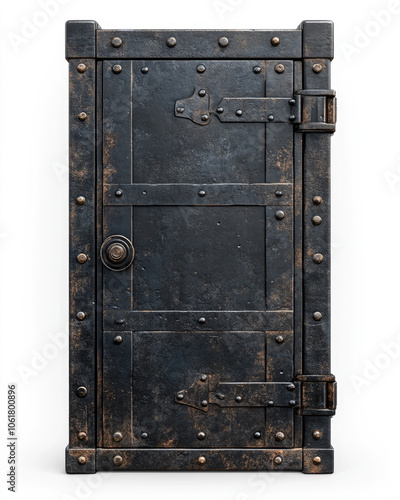 © Oranuch, Fototapeta premium Metal door with rivets, isolated on a white background.