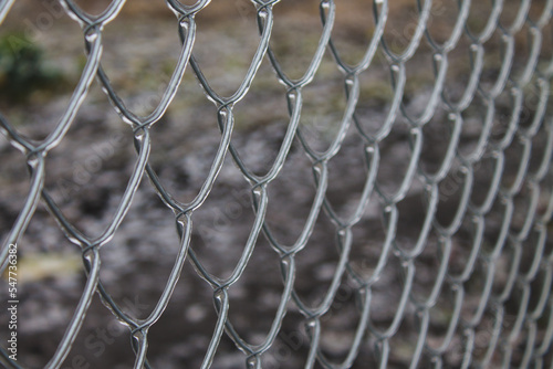 Fototapeta premium metal fence mesh covered with ice bad weather