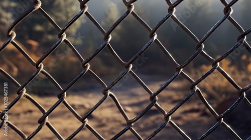 Fototapeta premium Metal Fence with Nature Background in Soft Light