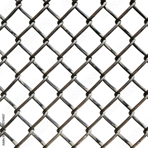 © MahmudulHassan, Fototapeta premium Metal grid fence isolated on white background