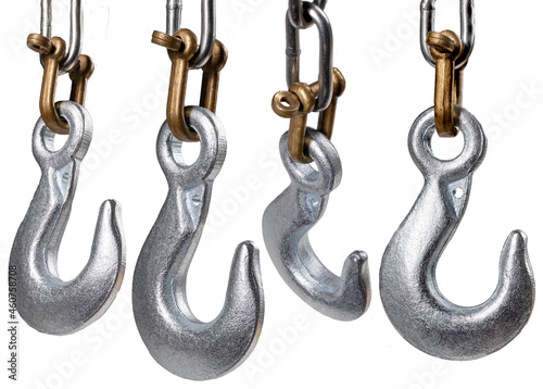 © Piotr, Obraz premium Metal hook on a chain for lifting heavy objects in the workshop.