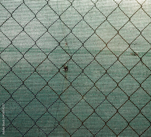 Fototapeta premium Metal mesh fence and synthetic fabric.