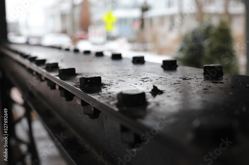 © Amanda, Obraz premium Metal pattern. Metal screws sequence. Metal texture.