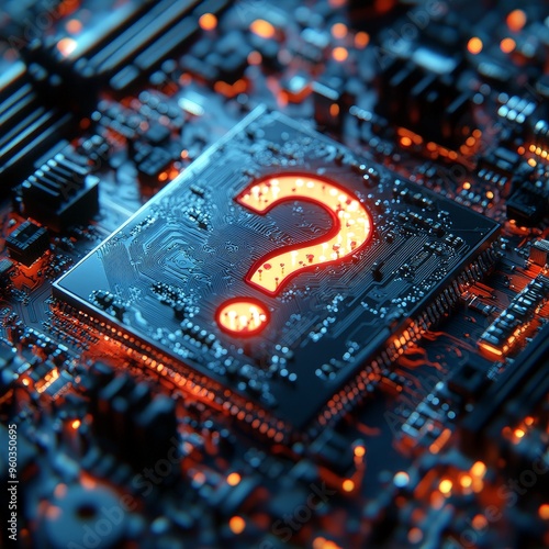 © gen_pick, Fototapeta premium Metal Question Mark on Chipset