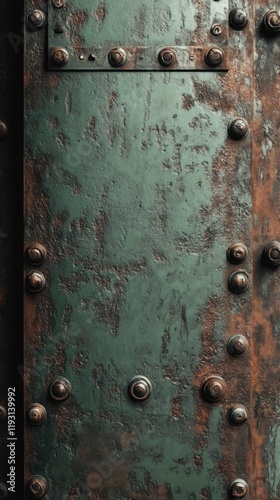 Fototapeta premium Metal surface showcasing tarnished green, oxidized brown, and charcoal black hues, creating a vintage and industrial atmosphere