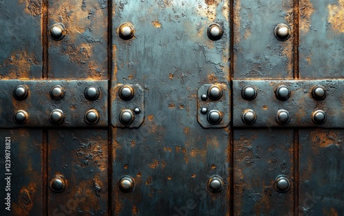 Fototapeta premium metal texture close-up with rivets and scratches ambient lighting