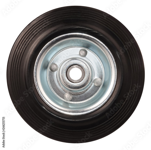 © Uros Petrovic, Obraz premium Metal wheel with tire isolated on white background