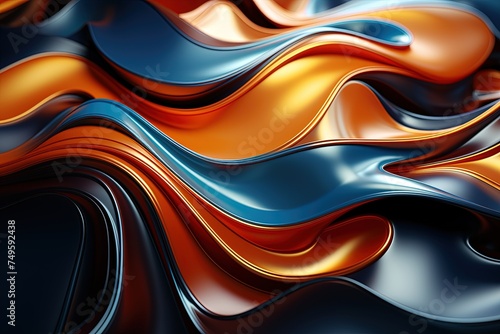 © Olha, Fototapeta premium Metallic abstract wavy liquid background mockup design technological innovation