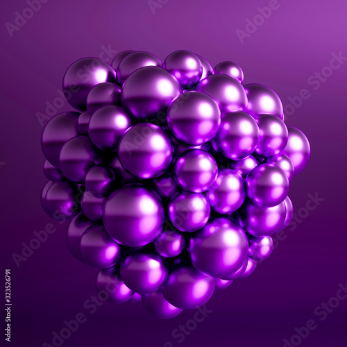 © Pierell, Fototapeta premium Metallic background with balls, atom, molecule. 3d illustration, 3d rendering.