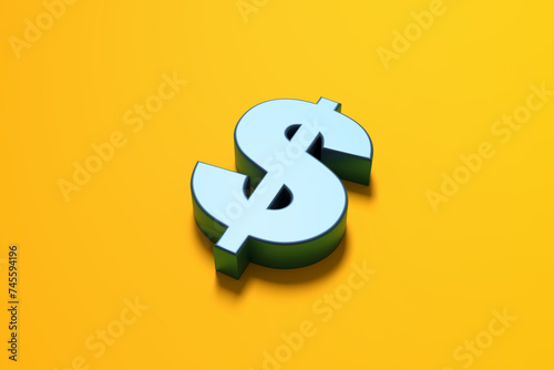 Obraz premium Metallic blue US American dollar currency symbol on yellow background.