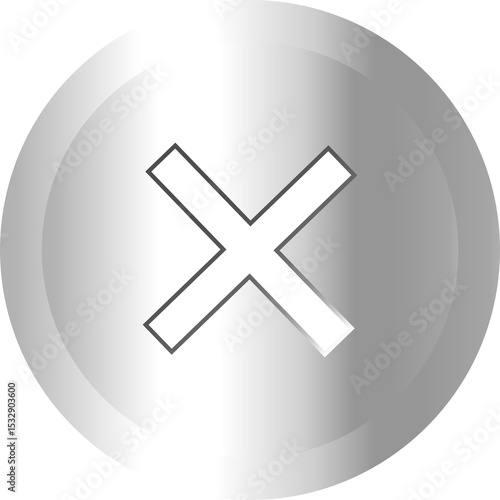 Obraz premium Metallic circular cancel icon showing 3D gradient silver circle with bold X...