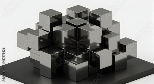 Fototapeta premium Metallic Cubes Forming Abstract Structure On Pedestal Over White Background