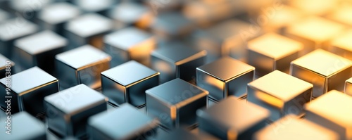 Obraz premium Metallic cubes, gradient lighting, smooth surfaces, abstract 3D illustration