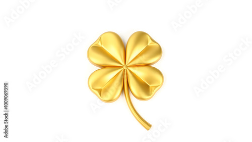 © Tark, Naklejka premium Metallic 3D image of 3D gold clover leaf on white background. Generative AI