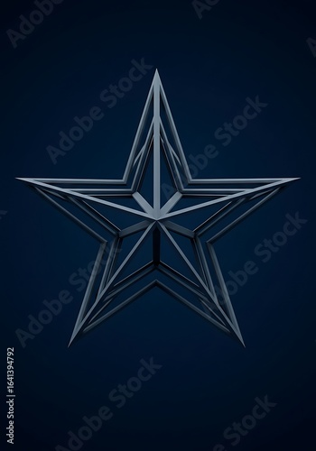 © Chizuu, Obraz premium Metallic 3D star emblem on dark blue background
