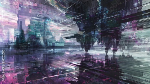 Fototapeta premium Metallic Dreamscape - Futuristic Abstract Robotic Landscape Digital Painting