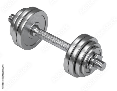 Fototapeta premium Metallic dumbbell with adjustable weights ready for strength training and...