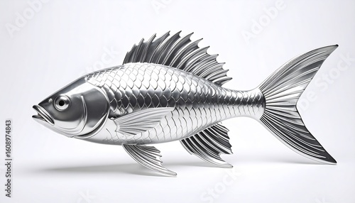 Obraz premium Metallic fish sculpture, detailed scales, fins
