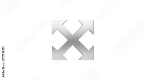 Obraz premium Metallic four-way arrow icon, 3D render, directional symbol, expansion, resize, scaling, interface element, user interface, UI design, button, application, software, website design, graphic desig