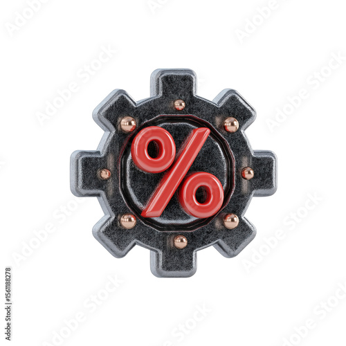 Obraz premium Metallic Gear with Red Percentage Symbol - Industrial Discount Icon