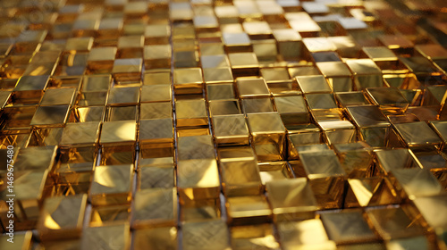 Obraz premium Metallic gold cube surface with reflective geometric textures
