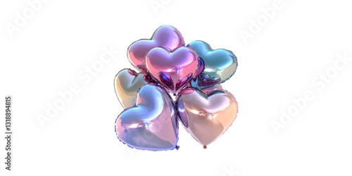 Fototapeta premium Metallic heart-shaped balloons cluster isolated on transparent background