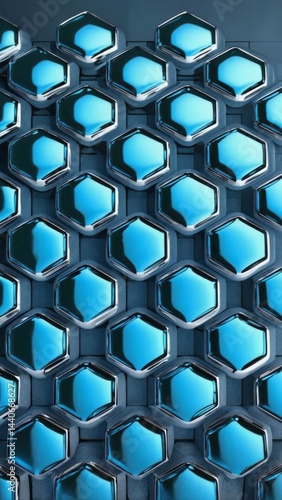 © Natalia, Naklejka premium Metallic hexagonal pattern with shifting gradient from silver to blue Modern bac