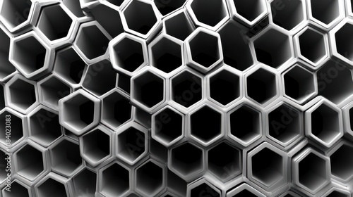 Fototapeta premium Metallic honeycomb pattern in 3D, with reflective and glowing edges, creating...