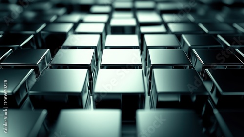 © andi, Obraz premium Metallic, interlocking cubes. Close-up