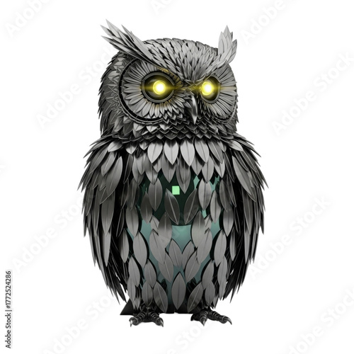 © momotaroy65, Fototapeta premium Metallic Owl Sculpture 3D Render Illustration on Transparent Backdrop