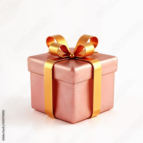 © Mohammad, Obraz premium Metallic Pink Gift Box with Golden Ribbon and Decorative Bow