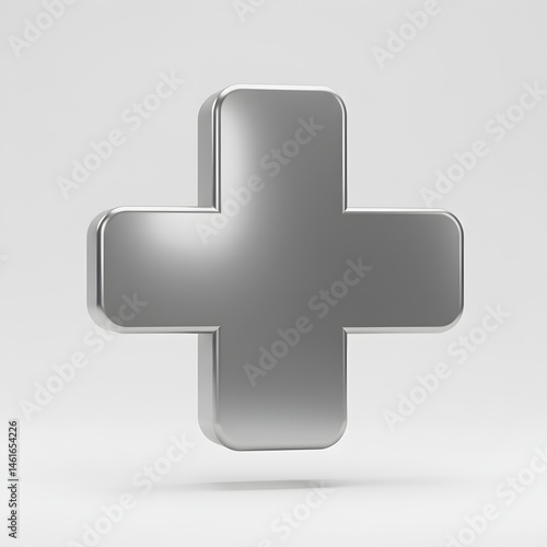 Fototapeta premium Metallic Plus Sign: 3D Render of Silver Cross