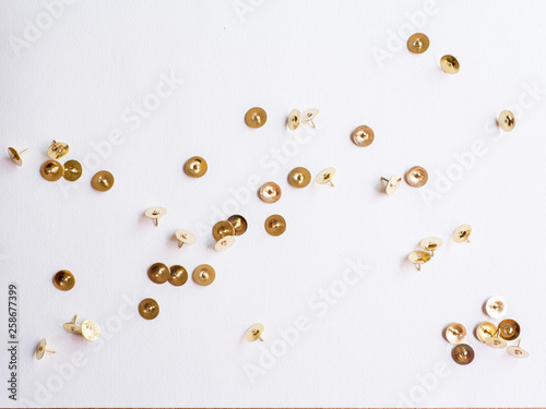 © Sasaton, Fototapeta premium metallic pushpins on white paper